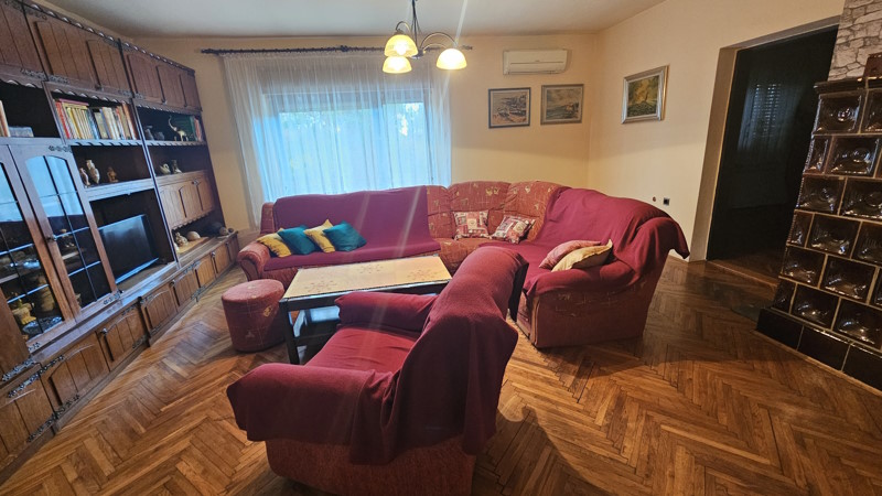 Kuća se sastoji od 4 sobe, kuhinje, kupaonica+ wc-a i balkona .