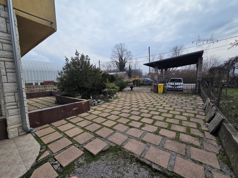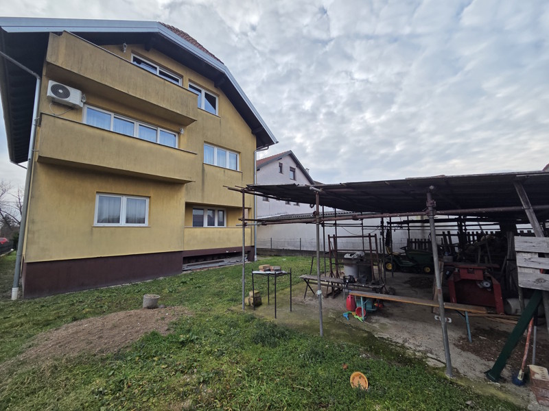 U dvorištu se nalazi nadstrešnica za auto i montažna nadstrešnica za alat i kosilicu.